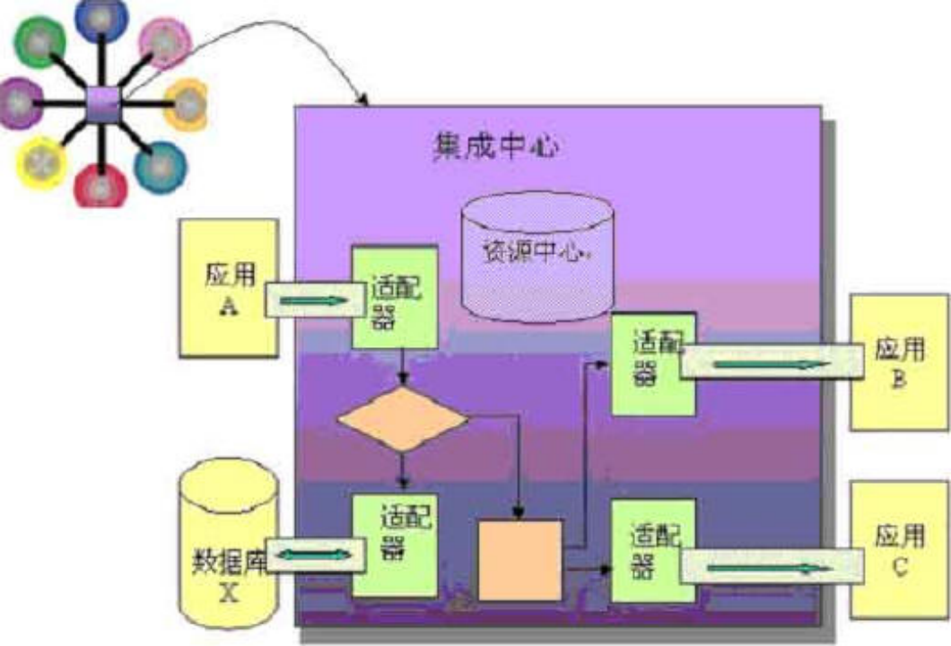 一般集成中心和各个系统的连接及相应的转换使用集成中心中所谓适配器来完成。同时,这种方式也使的集中管理以及流程集成成为可能。另外,体系结构中开始出现集中式的资源中心(Repository)。资源中心将原来分散的各种资源(适配器,组件,运行信息等)集中管理起来,这为用户设计,开发,部署和维护管理EAI系统提供了很大的便利。