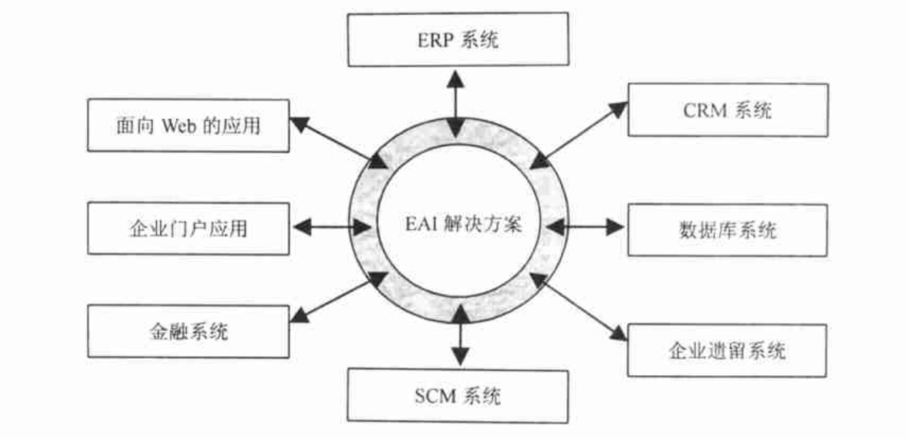 企业应用集成(Enterprise Application Integration, EAI) 是完成在组织内、外的各种异构系统,应用和数据源之间共享和交换信息和协作的途径、方法论、标准和技术。企业应用集成所连接的应用包括各种电子商务系统,企业资源规划系统,客户关系管理系统,供应链管理系统,办公自动化系统,数据库系统,数据仓库等等。